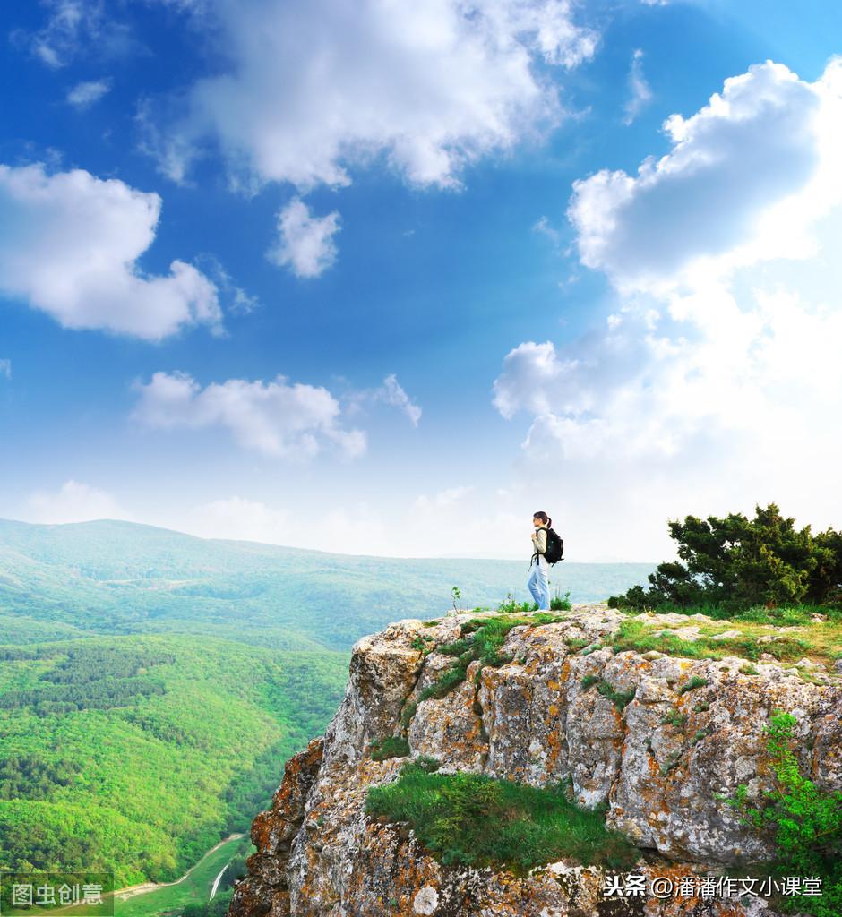 爬了大约个小时,爸爸还兴致勃勃,大气不喘一口,还很有心情欣赏旁边的风景:小珍珠似的,是路边的野果;五彩旗似的,是路边的野花;笔杆子似的,是嫩绿的花干。汗水顺着额头缓缓滑落,流经脸颊,又落入衣衫中。我已经想要放弃了,便停在原地,一动不动。爸爸回头:“快了,再坚持一会儿就到山顶了。”我沉重地叹了口气,不耐烦地说:“这山顶是有什么好东西吗?”爸爸回答:“你到了山顶就知道了!”我耸耸肩,重新出发,直奔山顶。