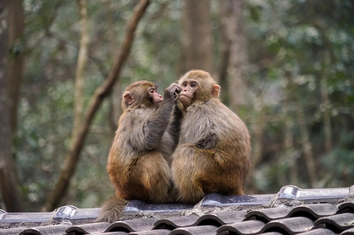 下了树后,那只猴子向投喂区走去。因为那里有着一群游客,买来粮食投喂猴子;当然,猴子多,食物少必然会产生厮杀,但为了生存,它们别无选择。一位游客半空中抛出一只香蕉,只见那只猴妈妈和身旁的另一个猴子同时飞扑过去争抢这只香蕉。为了香蕉,猴妈妈奋不顾身的和另一只猴子厮打在一起。厮打过程中猴妈妈的脸被抓出一道血痕,幸运的是猴妈妈最终抢到了这只香蕉。只见她马上跑回树上,第一口给的不是自己,而是它怀中的孩子。我见了这一幕,想起了那关爱我们的母亲,她们也不正是这样无微不至地照顾我们吗?