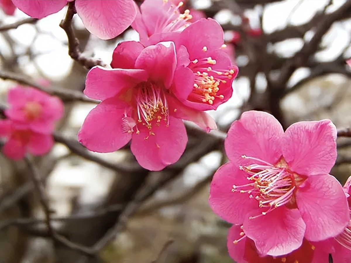 燕脂桃颊梨花粉,共作寒梅一面妆。