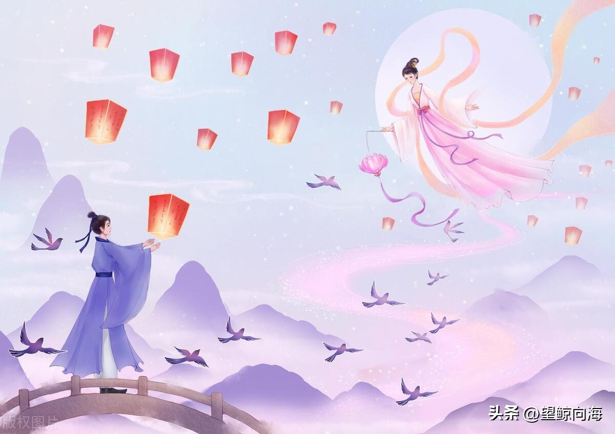 1、我的心上人是个盖世英雄,我知道,总有一天他会身披五彩战衣,踏着鹊桥来接我,今天你能来吗? 我的织女!