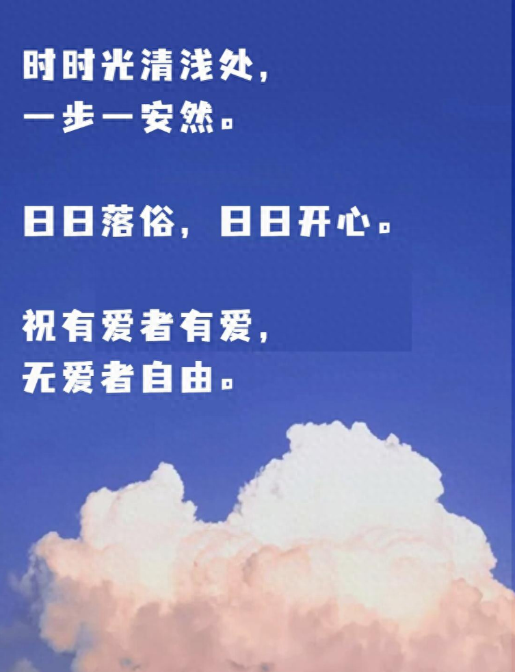 6、朋友,当生活太过忙碌单调时,请看看蓝蓝的天空暖暖的风,澄澈的水流奔向未知的美丽,前途总是妙不可言。无论你去做什么,记得带上好心态好心情。