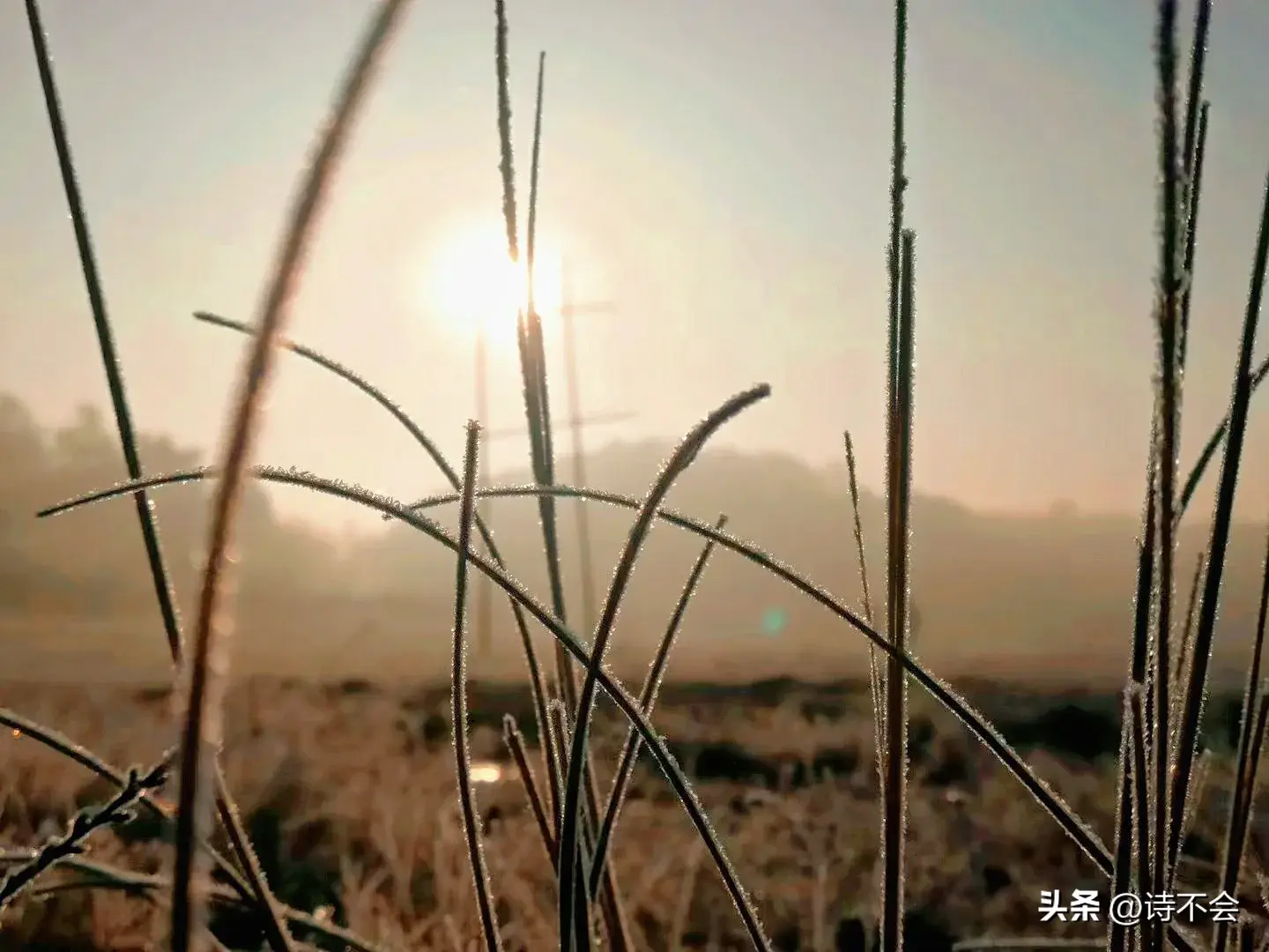 8、秋深霜降,霜花绽放于枯草尖,像是大地沉睡时的晶莹梦呓。