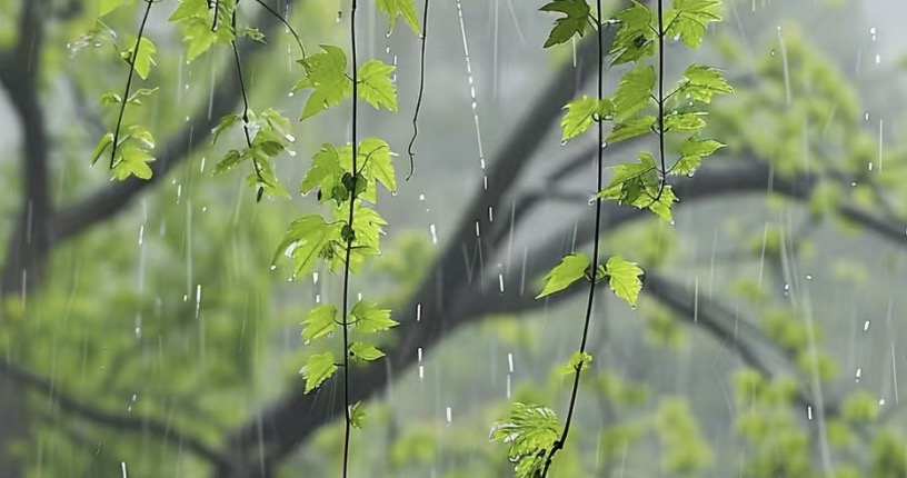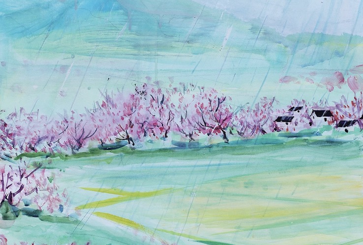 春雨濛濛,淡烟深锁垂杨院。暖风轻扇。落尽桃花片。