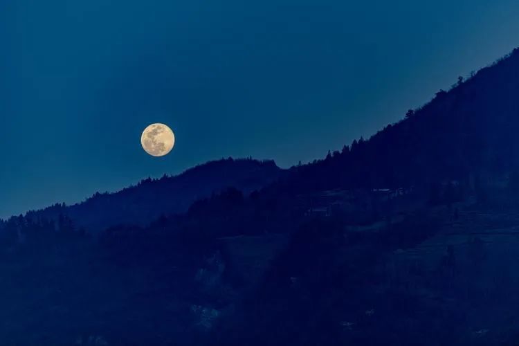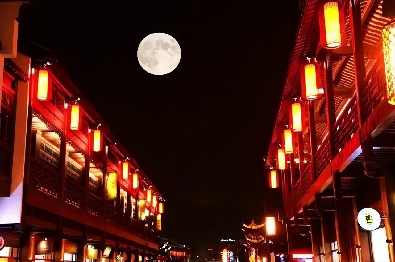 中秋明月洒下金色光波,好像刚磨亮的铜镜飞上夜空。