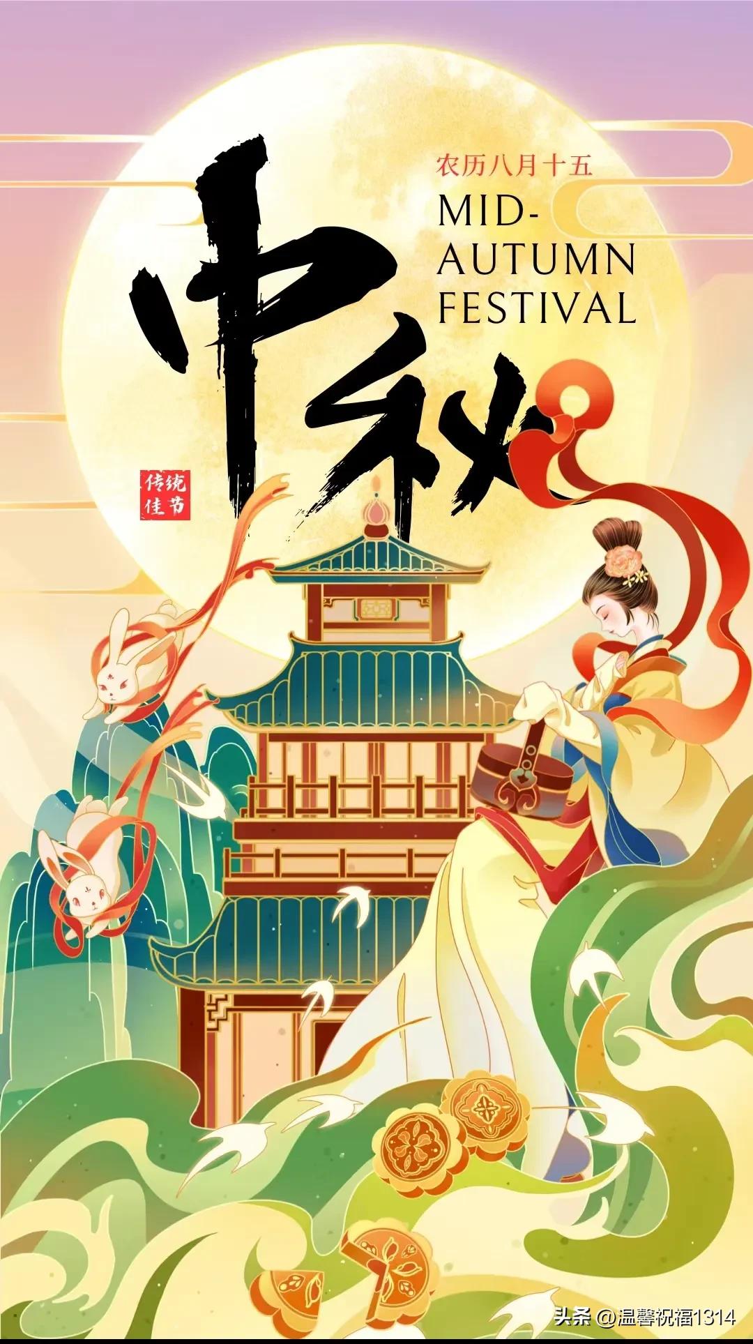 14、月满中秋,花好月圆,人间美景良辰,共度佳节。