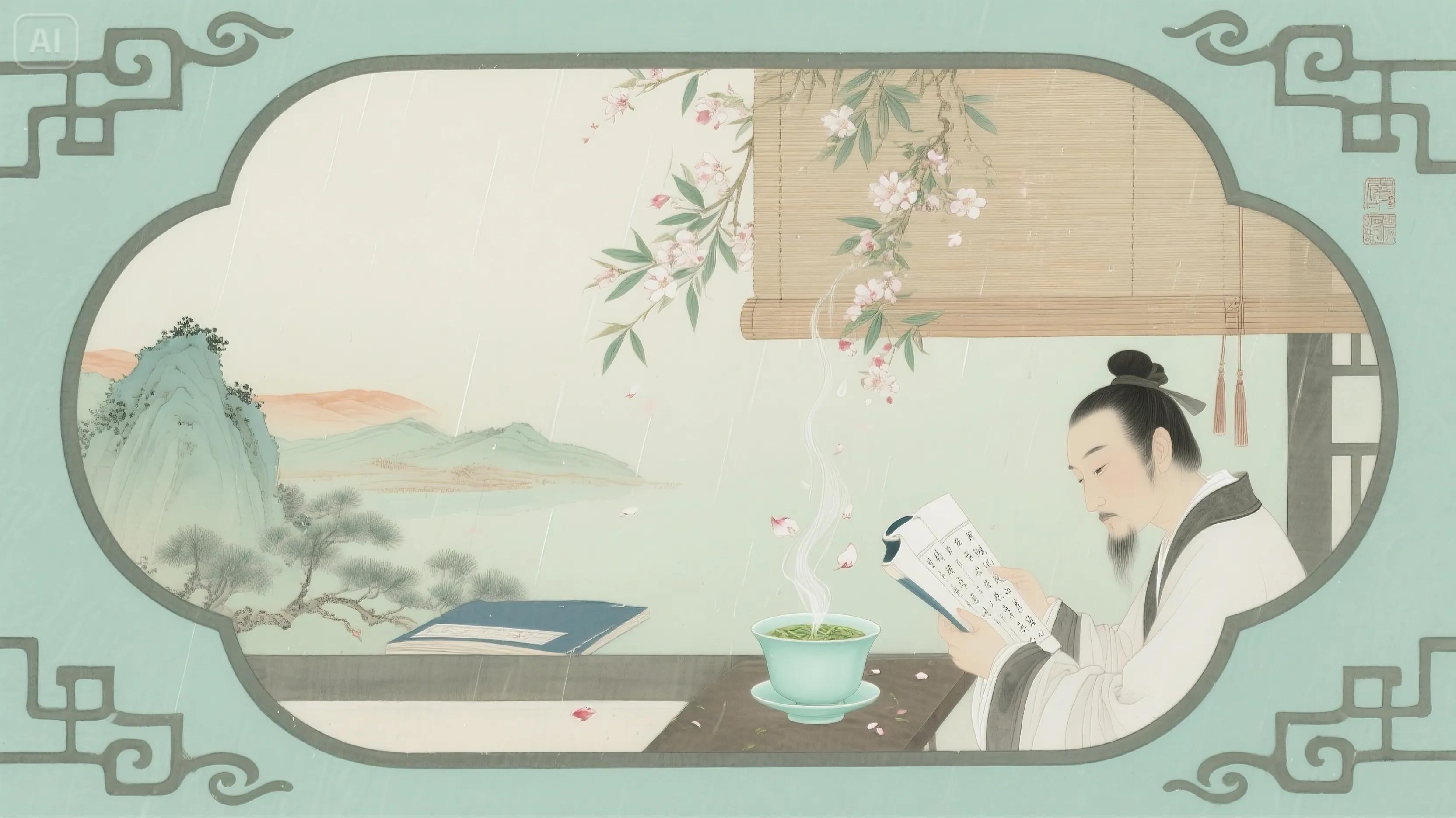 简析:谷雨采茶寄友,茶香中见隐士清趣