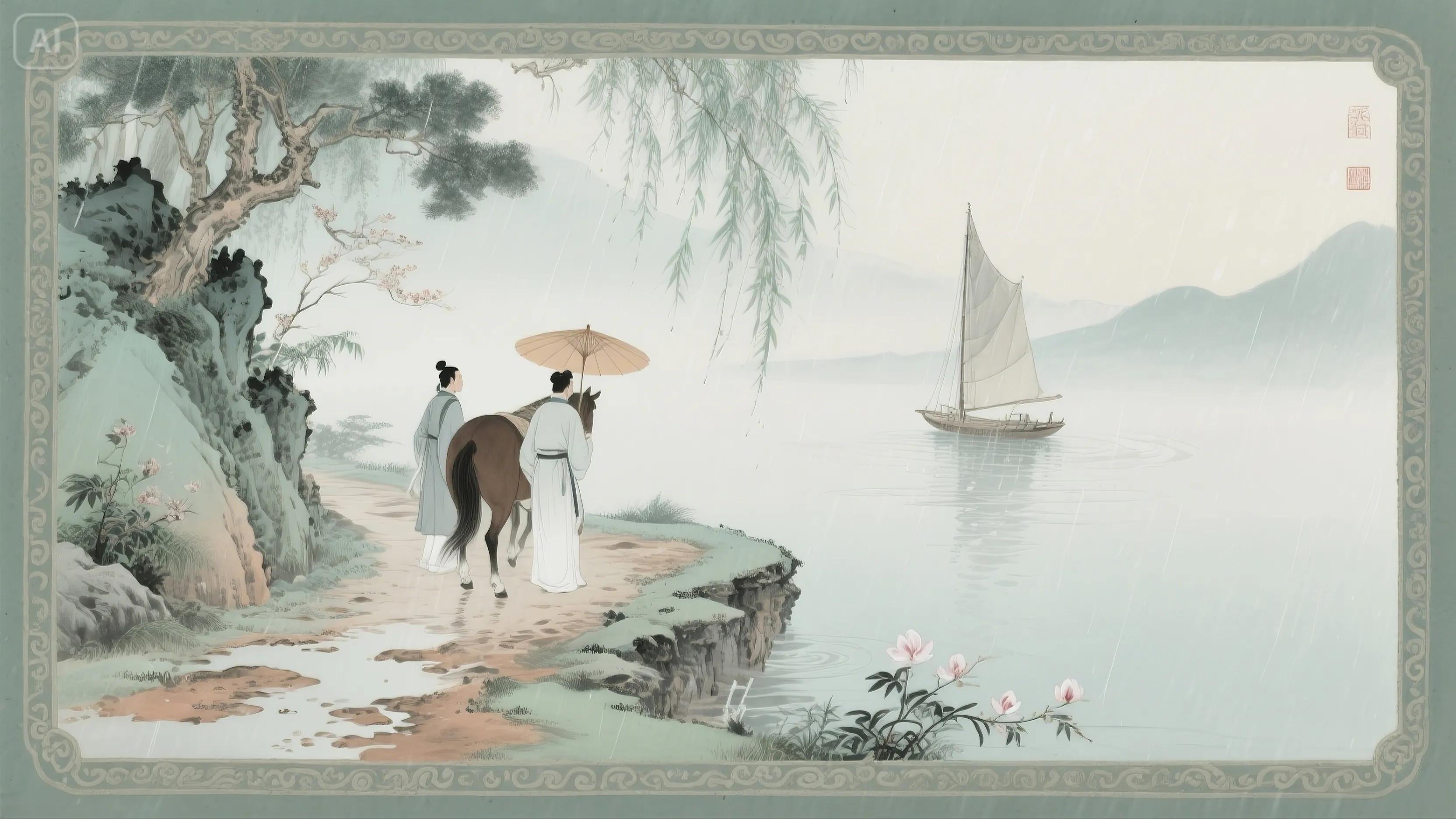 简析:山家谷雨采茶,茶香与渔舟构成隐逸画卷。