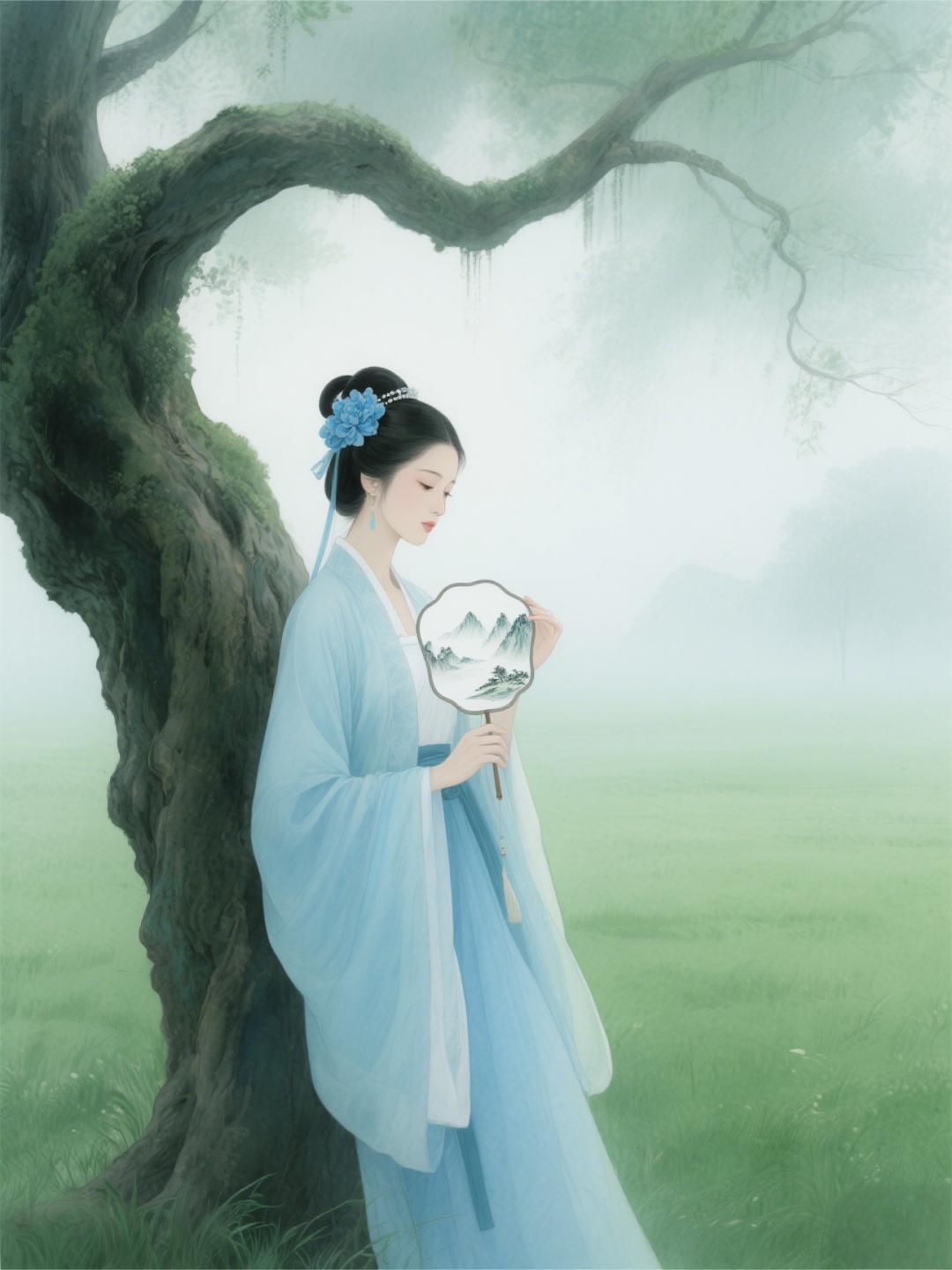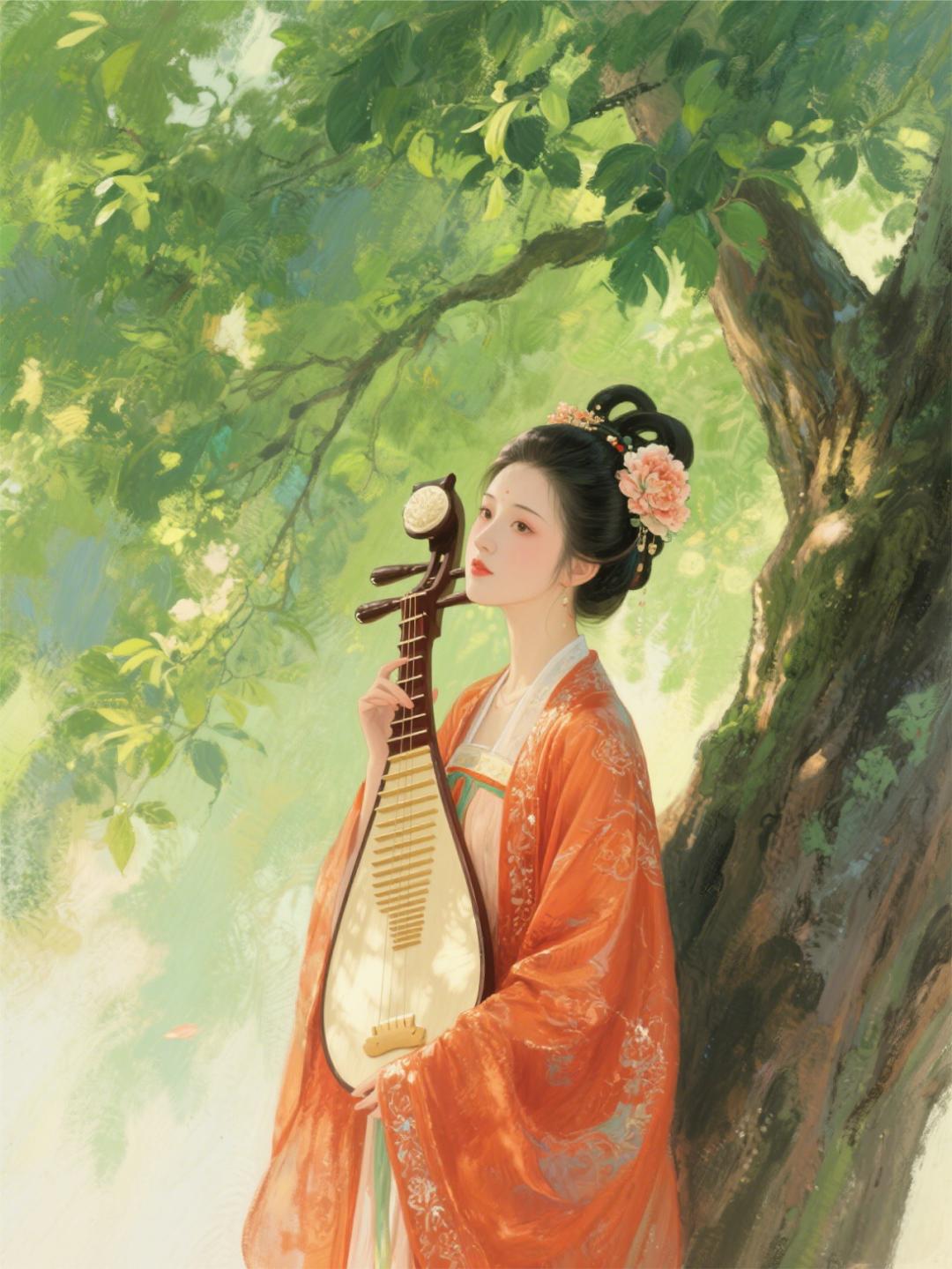 酷热天气里白昼格外漫长,日光炎炎似要将一切融化。女子身着轻薄罗衣,汗水浸湿衣衫,百无聊赖地斜倚在画窗前。蜜蜂和蝴蝶懵然不知春天已然离去,仍欢快地衔着娇艳花瓣,翩翩飞至她的闺房 ,好似要将春日的烂漫延续到这炎炎夏日里。