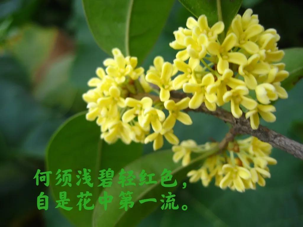 【赏析】桂树的绿叶青翠欲滴,仿佛是用碧云剪裁出来的,青青的叶片低垂着,保护着它那像金子碎屑一样的黄色花朵。它独占了花中的美誉,无论是它那优雅的气质还是幽郁的香气,两样都称得上是花中的极品,无谁能比。